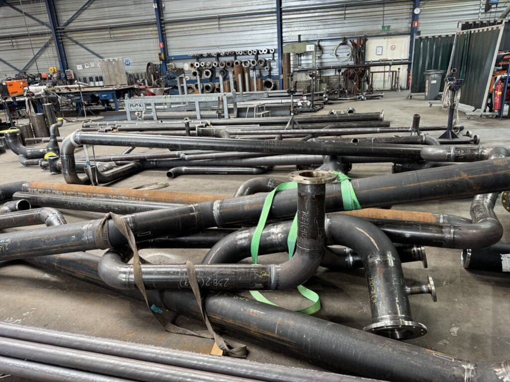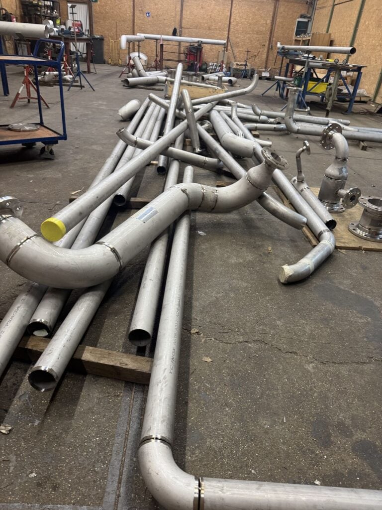 Vooruitlopend op hun verdere fabriek uitbreiding wordt er op dit moment in onze werkplaatsen hard gewerkt om de prefabricatie in stalen en RVS leidingen, binnen de gesteld termijn gereed te maken.